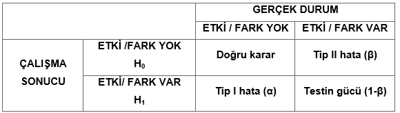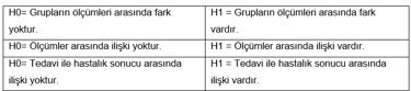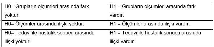Tablo 2. Yokluk ve alternatif hipotez örnekleri